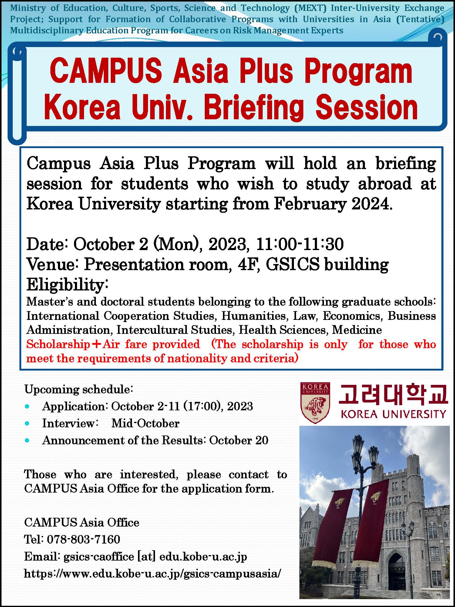 • Short term Study to Kobe University GSHS